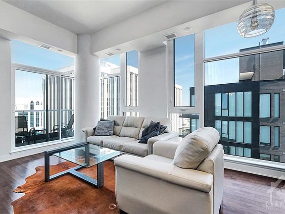 Bright and spacious 1 bed + den, 1 bath CORNER UNIT condo with unrivalled & unobstructed views of downtown, Parliament Hill, and the Gatineau Hills. Unbeatable location within steps of Elgin & Bank Street, the Byward Market, Rideau Canal, and Farm Boy right downstairs! The open concept layout offers a long kitchen with ample cupboard space, granite counters, and stainless steel appliances, living room with access to the north-facing balcony, and a den perfect for a home office. High ceilings (10') and large floor-to-ceiling windows (with electric blinds) flood the space with light. Hardwood floors throughout the unit. The bedroom is a cozy retreat with its own reading nook overlooking the downtown skyline. Building amenities include concierge services, an indoor pool, gym, party room, garden patio with shared BBQ's, and a rooftop terrace with breathtaking views. Heated underground parking and storage locker included. Just pay hydro - heat and water included! 2022-05-10