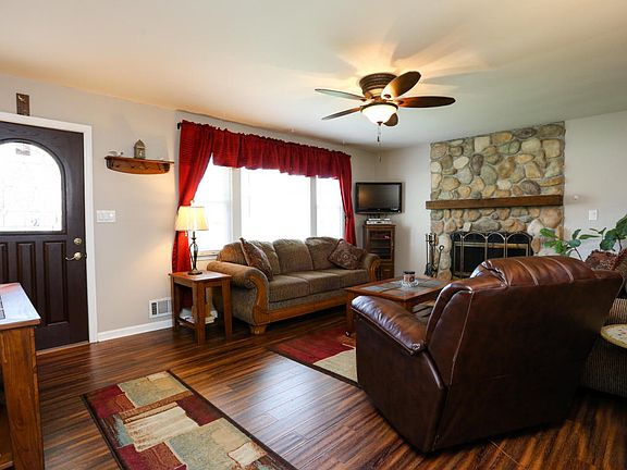 Beautiful Split Level! Spacious open floor plan featuring Living Room with upscale laminate flooring and handsome stone front wood-burning fireplace, Skylit Cathedral ceiling in Dining Room, Hardwood floors in Dining Room and 3 Bedrooms, newer Eat-in Kitchen with ceramic flooring and sliders leading to your own Shangri-la, large laundry room with laundry tub, conveniently placed powder room. Basics include newer Heating and Central AC, roof, siding and windows. Big plus is the exterior fenced in yard with 16x15 Deck, 25x25 Paver Patio and 10x8 Storage Shed. Great commuter location both for car, bus and train. Enjoy all that Hazlet has to offer including fantastic Recreation programs and the Hazlet Swim Club!