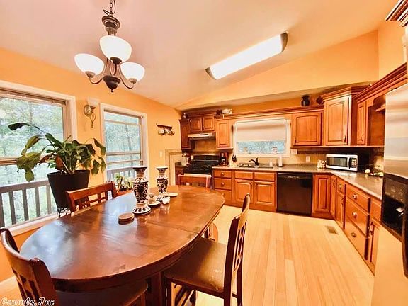 Beautiful scenery and views on this 3 bedroom 2 bath home with a full walk out basement with inside access. 2 bedrooms, bath, safe room and laundry room downstairs with kitchen, living room and master main living floor. There are several decks around this house for your enjoyment of the scenery around this home. There are two storage buildings one being new that will convey with the property and the new one has electric to it.