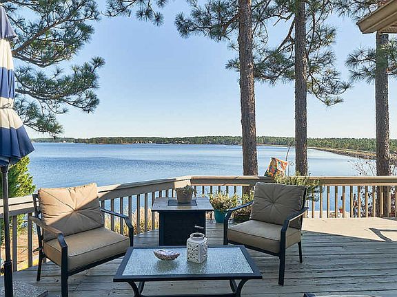 Beautiful and spacious waterfront home with prime views of Lake Auman! Updated and move-in ready home with lots of living space on 2 levels. Main level features large living room, sun room, dining and over-sized eat-in kitchen plus master suite and den/guest rm all overlooking the lake. Lower level features additional living room, 2 bedrooms, 2 full baths, plus ''bunk room'' for extra sleeping space, storage or flex space. Lot of storage throughout. Ideal location to view the sunrise and morning sun yet benefit from afternoon shade. Don't miss the outdoor shower and lake storage room! New roof 2016. Encapsulated crawlspace. Oversized garage fits 2 cars plus golf cart and workshop area. West End Schools! Security system and equipment do not convey.