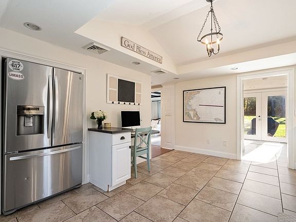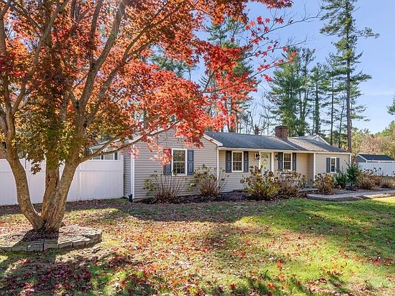 *Please submit any offers by 7pm Sunday 11/20* One level living at its finest, this 3 bed/1.5 bath home sits on just under 1 acre & offers a floorplan that will appeal to many! As you enter the home, the mudroom offers custom built-in cubbies, shelving & seating. The white kitchen w/ vaulted ceilings has been freshly painted & showcases new appliances (2022). The dining room has an upscale feel w/ a coffered ceiling, wainscotting, fireplace & breakfast bar. The sunken living room features built-in shelves, great natural light, & a slider to the backyard. Vaulted ceilings in all 3 bedrooms. The primary bath features a natural stone shower, double vanity & radiant heat granite flooring. Central AC, town water, gas & 5 bedroom septic! Equally as impressive is the 49x24 detached 2 car garage, perfect for a car enthusiast & has car-lift wiring in place, a generator hookup, running water & a HEATED bonus room that could be a gym, office, media room, etc.