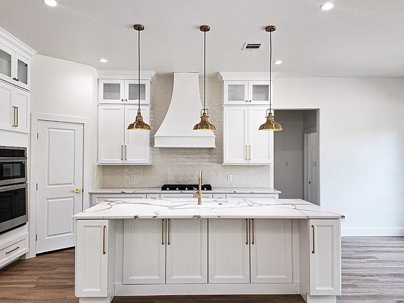 Step through the covered entry and be greeted by soaring ceilings, a designer chandelier, a dramatic open concept layout, and an ambiance of natural light pouring through oversized windows. The gourmet kitchen features quartz countertops, custom cabinetry, a stunning backsplash, and a large island with designer pendant lighting PERFECT for entertaining.