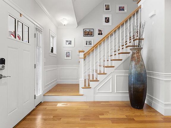 Welcome to this stunning 9-year-old colonial home filled with natural light and generous living spaces! Featuring 4-bdrms, 3.5-bths, this colonial offers a flawless blend of style and function.The open concept kitchen & living room is the heart of the home featuring an island, shaker cabinets, stainless steel appliances, sleek granite countertops, hdwd flooring and a gas fireplace with direct access to a spacious deck overlooking a private, fenced-in yard—perfect for entertaining. Inside, enjoy 9-ft ceilings on the main floor and 8-ft ceilings on the second, enhanced by an abundance of natural light.The master suite includes dual walk-in closets and a luxurious bath. 3 other large bedrooms, full bath &laundry room complete the second floor. Space abounds in the beautifully finished 3rd floor. Versatile finished lower level - perfect for an au pair suite w/ private living space is currently utilized as an exercise room, family room, with a full bath and sliders to the backyard patio!