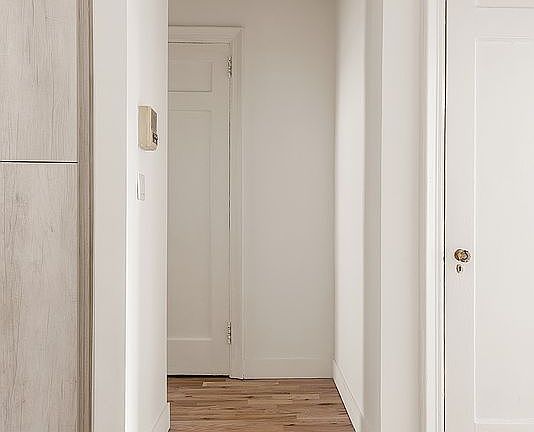 Located on the 4th (top) floor, the apartment has open views to the east and is very quiet. As you enter in to the apartment, immediately you will notice the abundance of eastern sunlight coming through the living room windows. The layout is very open, and the high 9’ ceilings contribute to the scale of the space.