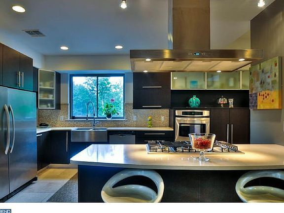 Built by the current owners in 2011, this Franklin Twp. Ipe and authentic Stucco masterpiece is a holistic balance of environmentally sensible design and contemporary, integrated living. From the 100 energy efficient windows to the three fiber glass roof top decks, every element incorporates the outside world into the everyday. Ten foot ceilings enhance the expansive floor plan while oak hardwood floors infuse refinement. Bi-level windows emphasize views of the preserved acreage outside the great room. Both the family and living rooms boast Rumford fireplaces and the entry way contains a radiant floor system. The dining room adjoins a state-of-the-art kitchen while a second prep kitchen next to the library accommodates overflow. Two first floor masters each with luxurious baths complement three bedrooms on the second level. Two bathrooms, dry sauna, and loft finish the floor. Close to downtown Princeton and NYC transportation. Princeton Mailing Address!