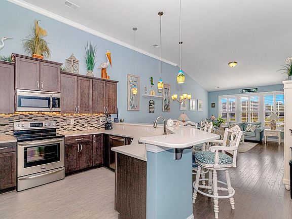 Now this home has the best view in the whole community!!! The homeowners have completed high end finishes in this immaculate townhome. As you cross the foyer and enter the kitchen you are greeted with sparkling quartz countertops, custom glass tile backsplash, beautiful (recently installed) tile flooring, a spacious pantry, upgraded pull outs in the cabinets, and all stainless steel appliances with a gas range. This truly open concept living showcases this incredible view of the fountain in the pond. For a closer view of the water you can relax in your private carolina room with a separate exterior concrete pad for entertaining and grilling. Downstairs features the master bedroom with two walk-in closets, double vanity, and a fully custom tiled shower installed this year. Another full bathroom and bedroom are also on the first floor. To help reduce the monthly expenses Nest technology was installed upstairs and down. As you go upstairs you are greeted with generous size bedrooms that will both comfortably fit king size beds. An additional full bathroom on the top floor allows for convenience of guests to not have to leave the privacy of their oasis. The one car garage has been maximized with space savings storage shelves allowing clutter to not gather in the interior of the home. HOA includes lawn maintenance, and access to the nearby pool. Within a short distance you are close to shopping, restaurants, the beaches and the famous Marshwalk in Murrells Inlet.