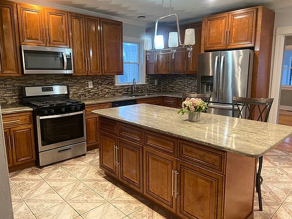 Well maintained 2 family with Central Air on first floor. Features include many updates including replacement windows, upstairs counters,and hot water tank. Modern kitchen remodeled 2 years ago with granite counters, new gas stove, dishwasher, microwave and refrigerator. The huge granite island in the kitchen is a great gathering spot for family. In the bathroom, dark fixtures accent the light tiles and the extra large vanity has plenty of storage. Bathroom remodeled this year. Hardwood floors just refinished. Lovely enclosed front porch great to display your hanging plants or even have your morning coffee in warmer weather. Hot air furnace 10 years old & the second floor furnace 12 years old. No need to go to the basement to do your laundry, hookups in unit. There is ample parking on this flat lot with oversized 2 car garage. Located minutes to Mass Pike, Rt. 290 and 146. Walking distance to the future ballpark & restaurants.