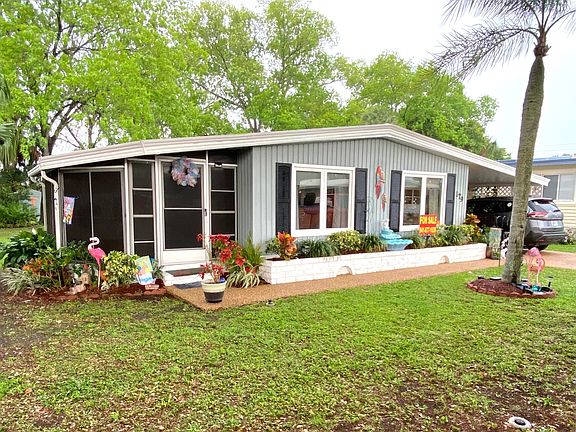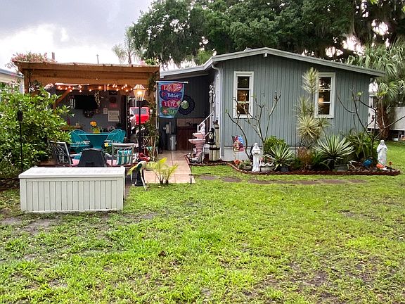 This fabulous 2 bedroom, 1.5 bath, with a bonus room is not going to last long. You can use this bonus room as a reading room, music room, office or put a sleeper sofa in there and have a separate area for when your grandkids or additional guests spend the night. Not only is this mobile home ready for you to bring your belongings and call it home but if you listen carefully you can hear it screaming your name, and the updates seem to be never ending. The entire plumbing system has been replaced and updated, updated electrical throughout, newer light fixtures, 3/4 subfloors with wood laminate throughout, however the spare bedroom does have carpet, hot water heater 3 years old, AC reserviced in 2020, metal roof resealed every year, windows are in excellent condition and for some that were replaced they are now thermal pane, custom window shades throughout, vapor barrier and tie downs are in great condition and intact, epoxy stone driveway, sprinkler system plus the detached shed where you have your washer, dryer and pet washing station which also has a tankless hot water system as well as room for storage and so much more. But, what will take your breathe away is walking into your large backyard. Not only do you have an additional shed for all your gardening tools or outdoor storage items but the landscaping is breathtakingly beautiful. You will enjoy a large pergola, outdoor shower area to get that sand off before going inside, fire pit, bbq grill area, mini fridge, bar area, large deep sink and enough room to entertain your friends and family all day and into the evening. Or you could sit back and relax in your surroundings and enjoy your little piece of paradise in your own backyard. Photos just can't do this home justice. Don't miss out on this beautiful home in the Florida Sunshine. All listing information is deemed reliable but not guaranteed and should be independently verified through personal inspection by appropriate professionals. Integrity Mobile Home Sales cannot guarantee or warrant the accuracy of this information, measurements, or condition of any property. Measurements are approximate. Lot rent is subject to change.