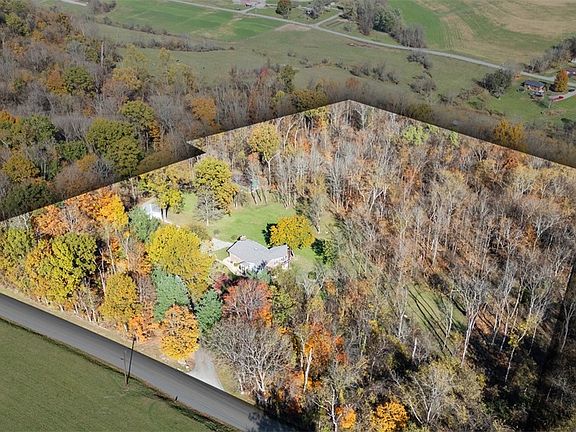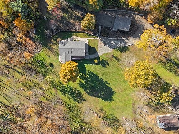This private 12.3-acre quiet retreat is a must see! A gated, paved driveway leads to this custom split-level home with 3 outbuildings, including garages and a barn surrounded by mature trees. A wrought-iron staircase opens to a spacious living room showcasing hardwood floors and flows seamlessly into a bright kitchen and dining area with skylight. The kitchen boasts granite countertops, skylights, a breakfast bar, double Jenn-Air ovens, and a corner sink overlooking the property. Dual sliding glass doors lead to an amazing sunroom wrapped in windows, filling the home with natural light. A new composite wraparound deck is perfect for relaxing and enjoying panoramic views. The primary suite includes an exposed brick fireplace, newly tiled ensuite bath, and French doors to the deck. A 2nd updated full bath and additional bedroom complete the main level. The lower level features a bedroom with 3rd full bath, game room with fireplace, 4th bedroom/den, 2 storage rooms and huge laundry area.