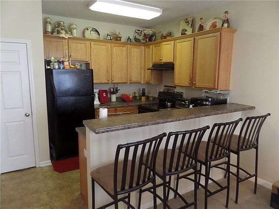 • Kitchen Features: Cabinets Stain, Laminate Counters, View to Family Room