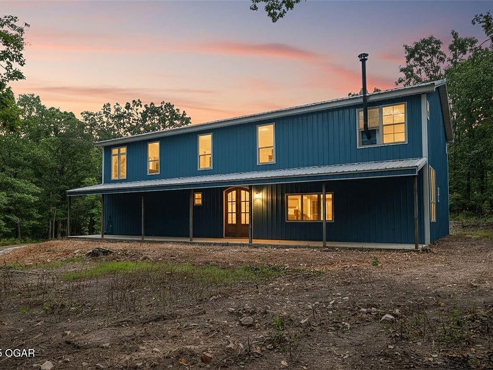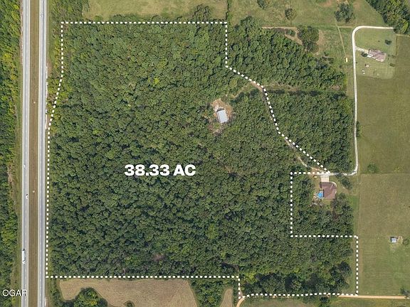 Discover 38.33 acres in Eagle Acres Phase II, Goodman, MO. This property includes an unfinished barndominium (approx. 2,100 sqft), fully enclosed with the exterior complete and framed for three garage bay doors. The land has subdivision road access and also backs up to the highway (no direct drive access). Trails are cut throughout the property for easy viewing and exploration. Electricity is already on site.