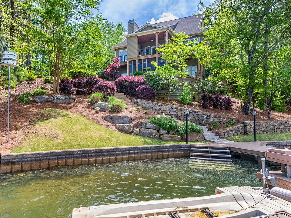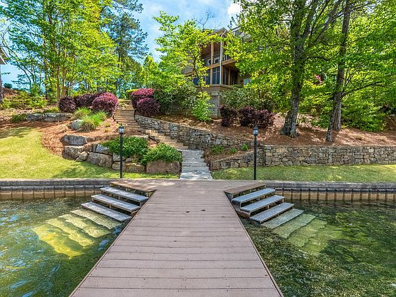 Perfectly designed 5 bed/5 bath lakefront home. Features include 2 inviting family rooms, stunning outdoor living spaces & a large dock. Ample outdoor entertaining includes an expansive deck with stone fireplace, lake view deck, stone fire pit, screened porch & large pier. Spending the day on the water is easy & enjoyable. Open concept living area showcases the water views & is anchored by a cozy fireplace. Kitchen features a large center island with seating, stainless appliances & gas cooking. Two main level master suites. Second level bedroom suite with separate sitting area. Terrace level boasts exceptional living spaces with a family room that opens to the screened porch, wet bar & 2 more spacious bedrooms. Enjoy all of the amenities of The Ridge from this exceptional residence!