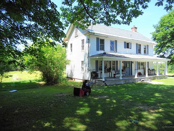 This large farmhouse sits on a nice 7.9 acre parcel of land that borders the Piscataquis river. You will find peace and privacy here with plenty of space. Large open yard , fenced in back yard, large rooms, first floor bedroom, bathroom and laundry room. Plenty of storage space, ample cabinet space, butlers pantry, and a wonderful covered front porch. The home has had some updates and has lots of potential. If you are looking for a beautiful country setting this just might be the home for you!