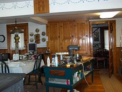 4/24/17 PRICE JUST REDUCED TO $179,900 (Original Asking Price: $189,900) MAKE THIS YOUR NEXT COUNTRY STONE AND WOOD FRAMED HOME!.......Feel nostalgic as you take a step back in time in this Early American Stone and wood framed farmhouse in a beautiful country setting. Large country kitchen with built-in floor-to-ceiling wood pantry cabinet, farmhouse sink with drain board, and beautiful wood floors. Formal dining room with wood flooring. Sitting room/reading room. Living room with brick fireplace and pellet stove insert. Master bedroom with deep set windows. Full bath. Back entry leads to attached workshop with two rooms above for storage. Two staircases lead upstairs in the house to spacious 5 bedrooms and 1 full bath with claw footed bathtub. Full basement with laid-up stone foundation. GARAGE: Detached 2-car garage. Exterior: landscaped yard with garden area in the back yard for your garden! Country setting awaits you! MAKE THIS YOUR COUNTRY HOME AND START ENJOYING COUNTRY LIVING!