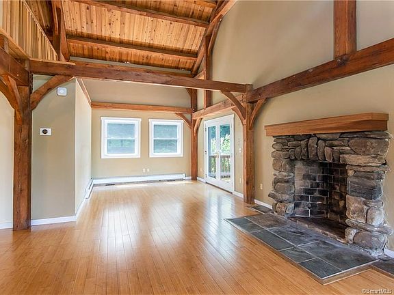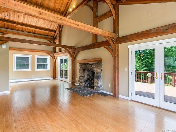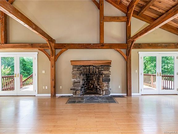 Post and Beam Cape style home has a wonderful Great Room that has 3 distinct areas that all have a view of the raised hearth stone fireplace. The wood beams and wood ceiling in the cathedral ceiling give this room a special feel. The dining room, just off the Foyer, is a welcoming space for dinner parties. The galley-style kitchen has a bright and sunny breakfast area and 2 skylights. Also on the first floor are two bedrooms and a renovated full bath with granite on the vanity. The floors on the 1st floor are all bamboo wood - very pretty. The access to the spacious deck is through two sets of French doors from the Great Room. Perfect for entertaining. The second floor has a large master bedroom with double closets and a double vanity master bath. The balance of the 2nd level space is a loft that could be a play space, office, exercise area, or office. The laundry closet is on this level. The loft looks out over the Great Room. The lower level is walk-out that is prime for finishing. There are 3 garage bays. The oil boiler is complemented by an energy-efficient wood-burning furnace. The roof was replaced in 2020 and most of the Thermopane windows are new. Located on 8.10 acres in a prime location. The lot is mostly level, has an expansive lawn, fruit trees, and garden area. There is a large utility shed and plenty of room for expansion. Some of the property is wooded with wetlands and a babbling brook. If you are looking for something special, this home is a perfect match.