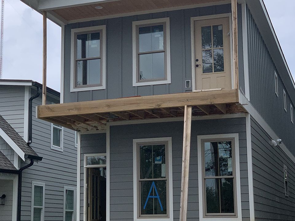 Custom built homes, with white kitchen cabinets, tile floors in baths, Wood throughout the main living area, Master up, Balcony