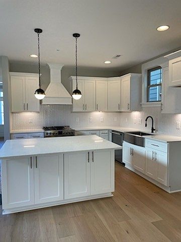 Custom built homes, with white kitchen cabinets, tile floors in baths, Wood throughout the main living area, Master up, Balcony