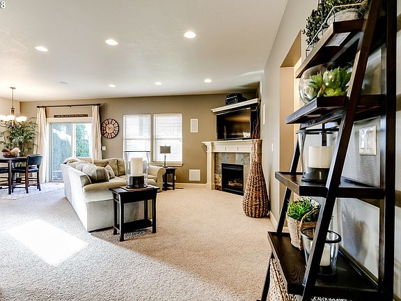 Darling single level home with an open/great room floor plan. Living room has a cozy fireplace and is wired for sound (garage too). Dining has slider to partially covered patio. Indoor laundry. Master bedroom with walk in closet and bathroom with double sinks and walk in shower. 2nd and 3rd bedrooms are separated by a bathroom. Underground sprinklers front and back. Tool shed. Don't miss this super clean home.