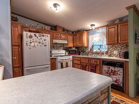 This 3 bedroom 2 bath manufactured DW sets on a pretty wooded .79 acre lot. The living room has great natural light from the windows and your fireplace, flanked by built-in bookcases with a wood burning insert to be appreciated these chilly winter evenings and mornings. A nice sized kitchen with pantry connects to your dining space with glass sliders to the rear screened porch. Owner ensuite has large vanity and pretty etched glass shower doors. There is plenty of parking and a gentle rolling front yard.