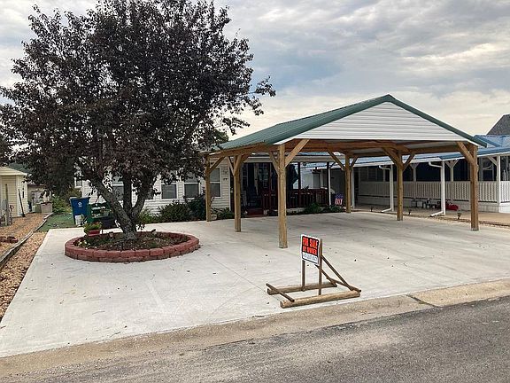 Forest Park is a quiet, amiable neighborhood in the heart of Branson. It is a quaint, tucked away community with full amenity use at Treasure Lake RV Resort with a membership. The property features a maintenance free yard, covered porch and a new oversized carport. The unit is a 2 bedroom, 1 bath park model. The second bedroom is complete with 3 separate closets, a private entrance from the outside and direct access to the bathroom. There is a 10 x 12 shed in the back for extra storage. The A/C and heat pump is 3 year old. The wood frame carport and front concrete were built last summer. There is plenty of parking out front for your cars and golf cart. Come and see this hidden gem with easy access around town.