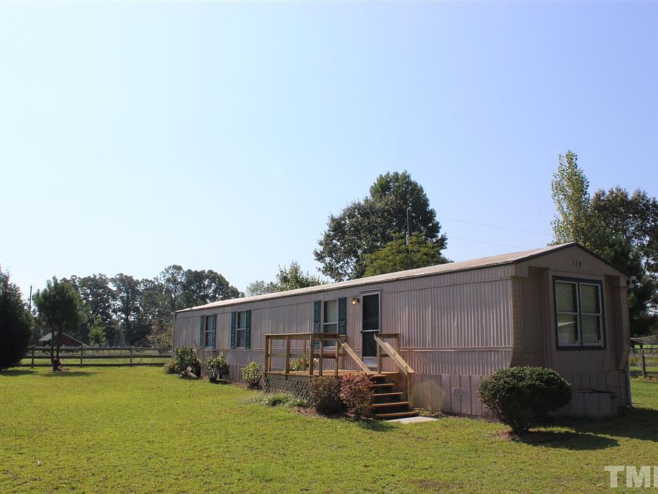 Bring your horses! Large level lot. This property has lots of potential! Outbuilding and cargo container, fenced pasture, large covered deck with built ins.There is a dog kennel with concrete pad. Manufactured home is 2 BR/2BA, has cute kitchen with built in desk, eating area, master BR has built in vanity. Appliance included. Needs a little TLC but will make a great investment or your private home place.