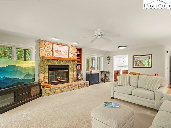 Welcome to The Cones—your cozy mountain retreat nestled in the heart of Blowing Rock, NC. This charming one-level living, 2-bedroom, 2-bathroom condo offers comfortable indoor and outdoor living areas, perfect for a weekend getaway or a full-time residence. Step inside to find a spacious living area featuring a beautiful stone fireplace with gas logs, creating a warm and inviting atmosphere. The open floor plan seamlessly connects the living and dining areas, making it ideal for entertaining friends and family. The kitchen is well-appointed with ample cabinet and counter space with a eat-in breakfast area, ready for your culinary adventures. Both bedrooms are generously sized, offering comfort and privacy. The primary bathroom has a walk-in closet, boasts a large tiled shower and an over sized vanity, providing a spa-like experience.