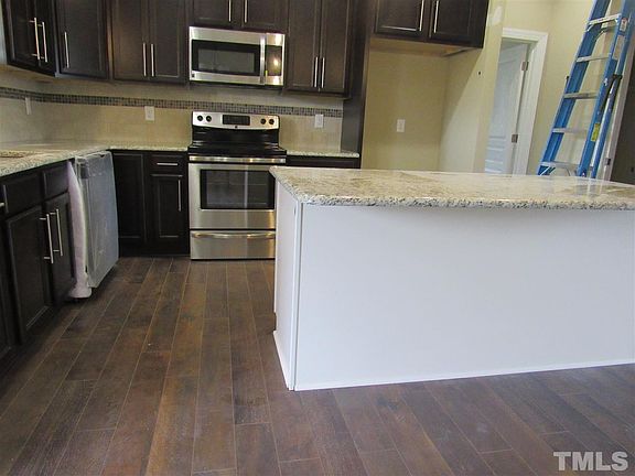 Four bedroom home all on one level! Awesome master suite w/huge walk in closet, bath with separate tile shower & garden tub, dual vanity. Split plan with 3 other bedrooms, each with walk in closet! Awesome open plan with great kitchen that includes a large island/bar, granite counter tops & CT back splash. Sep. laundry room w/tile floor. Tile floor in baths. Laminate upgrade from spec. Great new subdivision convenient to the Triangle area. Back on mkt due to financing.