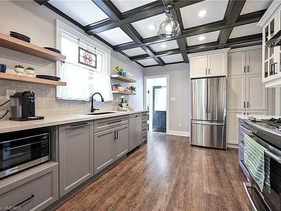 Burlington's most prestigious pockets, just minutes from Burlington Golf & Country Club & Lake Ontario! Peace & tranquility awaits you on a quiet, family-friendly tree-lined avenue in the heart of sought-after South Aldershot. Great curb appeal with manicured gardens, towering trees & charming flagstone walkway into your dream home! Bright & functional living room featuring wood floors, large bay window, coffered ceiling, & a gas fireplace to relax around. Dining room is open to the living room with wood floors & a walkout to a deck leading to the side of the home. You'll love cooking big family dinners in your custom Chef's kitchen with subway tile, coffered ceilings, double sinks, S/S appliances, gas range, soft-close drawers, modern floating shelves, & white cabinets. A beautiful sun room with a fireplace, just steps from the kitchen with multiple walkouts from the homes to backyard oasis with decks, in-ground pool & two sheds. Spacious primary bedroom oasis with wood floors, large window, connected to office space/bedroom by black barn doors. Office space can be converted to a bedroom. Second spacious bedroom with wood floors, perfect for a nursery. Sun-filled shared 3-piece bathroom on main level with claw foot tub to relax & unwind in! Professionally finished lower level boasts 2 additional bedrooms, rec room with fireplace, hidden nook, large 4-piece bathroom with soaker tub & laundry. Perfect teenager retreat or nanny suite. Great Family-Friendly Neighbourhood with all the indoor & outdoor space for any growing family. Steps to Glenview Public school, Aldershot High school, parks, & trails. Close to great shopping, all amenities & major highways. This home will not disappoint!