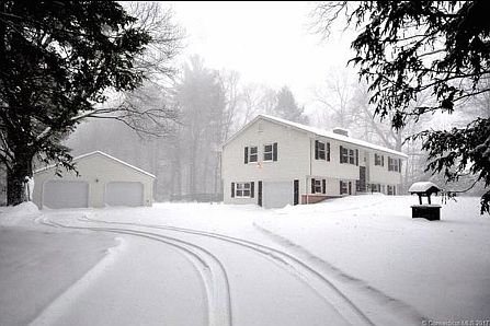 BEAUTIFUL raised ranch nestled on 2 acres of wooded land. The open floor plan in the fully remodeled home is light and airy. Updates include: granite counter tops and stainless appliances in the kitchen, new lighting and windows throughout, new deck, new septic and well pump, updated electrical and plumbing, new heating system (2012), three fully remodeled bathrooms, new roof and partial siding replaced (2018). In addition to the attached garage, the property features a detached 3 bay garage with a storage room, ideal for storing a boat, multiple cars or convert into a workshop or art studio! Conveniently located to shopping, restaurants, schools, the airport and highways. This is a great place to call home!