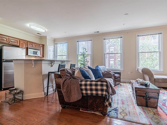 Location, Location, Location! Large 2 bedroom/ 2 bathrooms located in prime Paulus Hook; the most desirable neighborhood in Jersey City. Over-sized windows line this corner unit apartment flooding every room with natural light. Hardwood floors, washer and dryer in unit, kitchen comes equipped with custom cabinets and stainless steel appliances. Spacious master bedroom with en suite bathroom. All of this in a just walking distance to the PATH, Ferry and Light Rail. 1 garage parking space is included. Pets accepted on case by case basis. No smokers. Tenant pays realtor fee. Credit report w/score + lease application + 3 most recent paystubs required.
