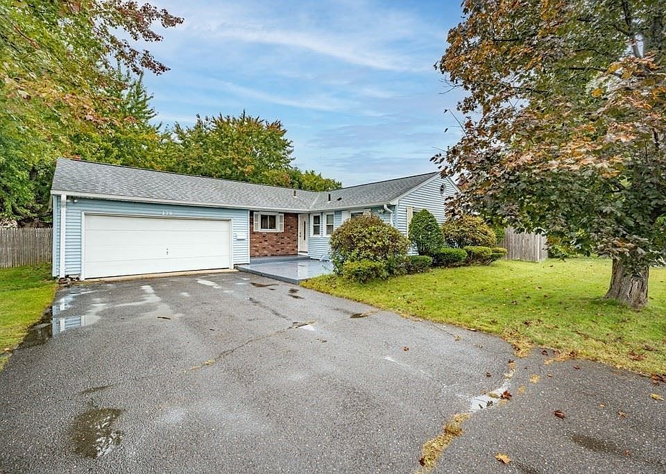 Beautiful 3 bedroom 1.5 bath RANCH with hardwood floors throughout. OPEN FLOOR PLAN with beautiful wood burning fireplace and central air. So convenient to highway access and shopping. Nice flat yard with circular driveway and 2 car garage with opener and fenced backyard. Recently renovated Sunporch off the bedroom is just an added bonus! UPGRADES INCLUDE; new roof (2021), partial chimney rebuild, new rear steps (2021), newer boiler and air compressor (apo 2014), partial basement waterproofing (2022). New roof has ideal exposure for Solar Panels should the buyer want to maximize savings and add panels$$$ ~Open House October 9th from 12 - 2:30. DON'T MISS OUT!