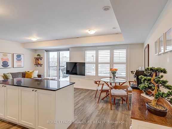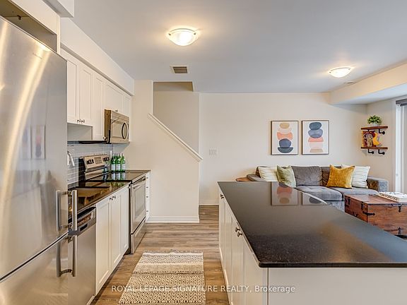 Welcome to 4-179 William Duncan Rd, a stunning 3-storey townhouse nestled in a serene, beautiful Mattamy-built community right by Downsview Park. This end unit has 1269 sq ft of living space spread across three floors: 2 bedrooms, 2 bathrooms and a top floor den that would make a perfect home office. This loft area opens out to your own private east-facing rooftop terrace. Enjoy your morning coffee, summer bqqs, or late night stargazing out on this terrace that's already been fitted with a pergola. The open-concept main floor features a white shaker-style kitchen with black granite countertops and a huge centre island (lots of counter space for meal prep). Super functional floor plan with great flow and lots of natural light. You're steps from the expansive Stanley Greene Park where you'll find basketball courts, tennis courts, splash pads, and an ice skating rink. Imagine townhouse living but without the hassle of snow removal and landscaping. A home you can truly enjoy without the arduous upkeep. With trails, nature, and curated outdoor experiences right at your doorstep. This townhouse comes with an owned surface parking spot at the back. Visitors have access to dedicated visitor parking spots at the back as well as city/street parking. Easy commute with nearby TTC bus routes, Downsview Park Subway Station (Line 1), GO Transit, and quick access to Hwy 401 and 400.