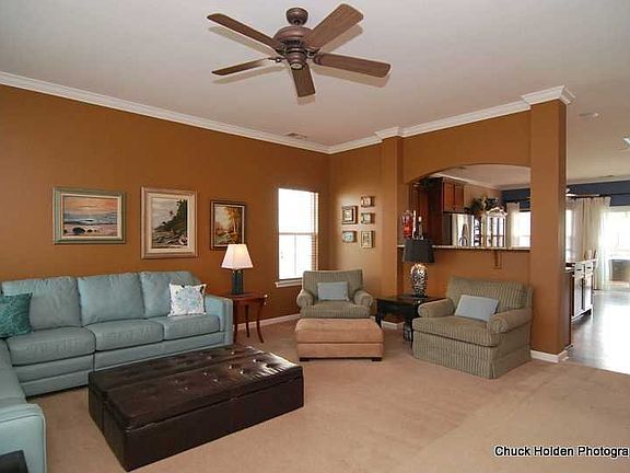 Curb appeal perfection from the beautiful landscaping, Bahama shutters,lush zoysia lawn and slate walkway leading to the welcoming front porch complete with sitting area. Pride of ownership is evident throughout this home. Lovingly maintained and full of upgrades that not only make sense but make day to day living easier. Large greatroom is open to the family style designer kitchen that has room for all and fantastic storage options. 4 bedrooms including the main level master suite, bonus room is 4th bedroom. All the bedrooms are large and feature walk in closets. The home's true show stopper is it's 26x16 deck shaded with a dramatic sail system. Envy worthy garage is a handyman's dream! This home will not disappoint.