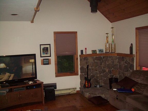 CLOSE TO SKI RESORTS! Less than 35 miles to Hunter, Windham and Belleayre! This beautiful contemporary 3 bed/2bath on 5+ wooded acres is located in the exclusive and private Taber Woods Estates. It is VERY economical to heat and has Co-Op Elec. Sun-drenched rooms highlight the open floor plan with cathedral ceilings and loft. Wide plank wood floors throughout and a stone backdrop with woodstove adorn the living room. Finished basement with built-in handcrafted bar for entertaining or a family game room. Newer roof, huge deck w/awning and beautiful landscaping with perennial flower gardens in a private, secluded setting. Enjoy BBQ's, golf, hiking and summer activities, big & small game hunting in the fall, skiing, X-country, snowshoeing and snowmobiling on the trails down the road in beautiful Upstate NY in the foothills of the Catskill Mountains.