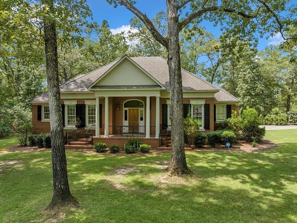 This custom built, well-maintained, brick beauty in excellent condition is ready for your personal touches! This residence offers an exquisite front porch with dual spiral stairs that welcomes you home. Step inside to discover a thoughtfully designed floor plan, featuring generous living spaces bathed in natural light, elegant details like gorgeous crown molding, high ceilings, custom cabinetry and shelving, etc. The heart of the home is the huge kitchen with newer tile floors, solid surface counters, island, incredible cabinet space including pull-out drawers, spacious walk-in pantry and eat-in area. Prepare meals with ease and gather with loved ones in the adjacent breakfast nook. The spacious family room offers ideal cabinetry and shelving to highlight your photos and cherished treasures, incredible views of the private lawn and French doors that open to a serene porch overlooking the peaceful surroundings. Retreat to the tranquil oversized primary suite, complete with a spa-like en-suite bathroom featuring double vanities, a soaking tub, separate shower, and a large walk-in closet. Additional bedrooms with jack-and-jill bath provide comfort and versatility for family, guests, or a home office. An additional guest bath is located near laundry room and garage entrance, perfect for guest. A generous size storage room is located in the garage. Enjoy outdoor dining, gardening, or simply bask in the beauty of your peaceful retreat. Join in the fun with access to the community's swimming pool, perfect for staying active and connecting with neighbors. This wonderful home is ideally situated for convenient access to shopping, dining, entertainment, and major highways.