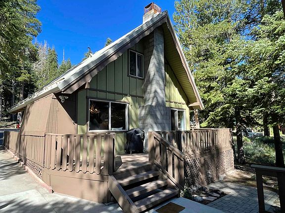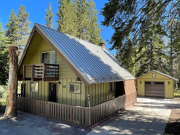 Super cute 3-Bedroom/2-Bath cabin with oversized 1-Car garage and situated on .52-acre flat parcel in the woods. Great location with private quiet setting and nature just outside your door plus easy summertime access to hiking and bike trails. New exterior paint just completed and interior upgrades include new furnace, paint, water heater, and updated furnishings, etc. Gas log fireplace in the living area plus forced air heat, additional storage and laundry are located under the house with interior access to the basement area. The town is providing pre-approved plans for potential ADU so yet another great option to consider. This adorable home and large lot are a special find and will make a great vacation retreat or place to call your new home!