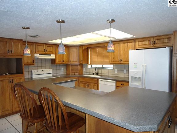 Located 8 miles from McPherson city limits this 3 bedroom 2 bath homes sets on a 5.3 acre lot. Kitchen and bathrooms have been tastefully updated with solid surface counter tops and Oak cabinetry. Appliances included! Large metal building with concrete floor. Property is located in the flood zone.
