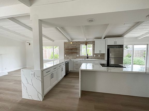 Nestled in one of Carlsbad's most sought-after neighborhoods, this beautifully remodeled 4-bedroom, 2-bathroom single-story home offers the perfect blend of modern upgrades, coastal charm, and unbeatable location. Step inside to an airy open-concept layout flooded with natural light, vaulted ceilings with exposed beams, and luxury vinyl plank flooring throughout. The designer kitchen is the heart of the home, complete with gleaming quartz countertops, a spacious island with waterfall edge, stainless steel appliances, and custom cabinetry perfect for home chefs and entertainers alike. Highlights Include: Fully renovated kitchen with oversized island & sleek finishes Modern bathrooms with upgraded fixtures and tile Huge lot with turf backyard and landscaped front yard (landscaping included!) Oversized storage shed for bikes, surfboards, tools, or gear Private driveway with room for 3 vehicles Separate laundry area with washer/dryer hookups Energy-efficient windows and LED lighting throughout This home shares a lot with a detached granny flat (ADU) with a completely private entrance perfect balance of privacy and space. Location, Location, Location Just minutes to Carlsbad's stunning beaches, top-rated schools, and vibrant shopping and dining in Carlsbad Village. You'll love the easy access to parks, hiking trails, and commuter routes everything you need is right at your fingertips. Whether you're sipping coffee on the patio or heading out for a sunset surf, this home lets you live the laid-back North County lifestyle to the fullest. Reach out today to schedule your private showing this one won't last. - Tenant pays utilities - Monthly income qualifications 2.5 x monthly rent - No evictions or unlawful detainers - Renters insurance required before move-in - Do not disturb tenants