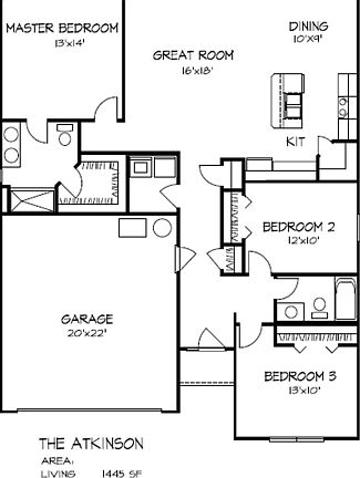 Our most popular plan features 3 bedrooms with an open concept floor plan and large Master Suite.