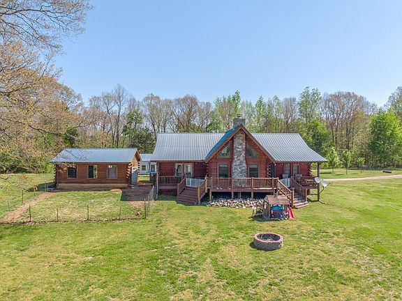 SPECTACULAR VIEWS EQUESTRIAN PROPERTY! Custom Log Home on 17+Acres*Rich HardWoods throughout the home including Hickory, Southern Yellow Pine & Touches of Cedar*stone fireplace*soaring ceilings*loft area*ABSOLUTELY BREATHTAKING*Partial Basement *Covered Porches*HUGE SHOP/garage*carport*flowing creek*hunting lodge/storage/grounds keepers*Fenced for horses with/3stall*barn*