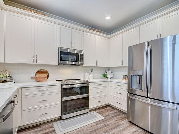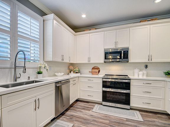 New flooring - 6 inch LVP flooring on main living level&upstairs hallway*Replaced all window screens&multiple screens on pool enclosure*Replaced screening on door at front entryway*Resurfaced pool decking/side walkway*Powder room vanity and mirror*Painted main living level*Updated landscaping KITCHEN UPGRADES:GE Profile Stainless steel appliances, Double Oven, Dishwasher, Microwave, REFRIGERATOR *Kitchen cabinets, soft-close with Antique White Shaker Cabinets/drawers& hardware*Quartz countertops and backsplash*Brushed Nickel kitchen faucet and stainless steel under-mount sink.Electrical/Lighting:Updated electrical with new GFI switches throughout home*Pendant lighting in kitchen, dining room and foyer*Ceiling fans in FR and office*Added additional plantation shutters - (Kitchen, DR snd LR)*Ring security camera front entry*Honeywell Wi-Fi Wireless Thermostat*Rachio Wi-Fi wireless control panel (outside) for irrigation system*LED can lighting in all upstairs closets, MB vanity sink area, as well as storage closet off FR , kitchen pantry and laundry room on main level