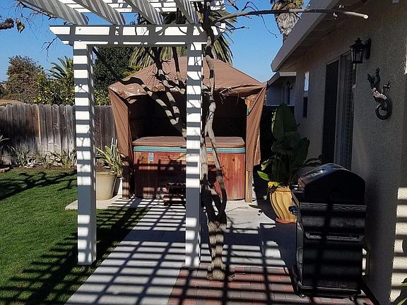 Great home in a excellent area. 4 bedrooms,2 baths,3 car garage. This home was built in 1999 by the Del Curto brothers. Open floor plan. Large kitchen/family room combo. Master bedroom and bath are in excellent condition as are all the rooms. 3 large palm trees in the front yard and a patio and a hot tub in the back yard make this a oasis in a established area of Hollister.Kitchen counter and island tops are Silestone Quartz.