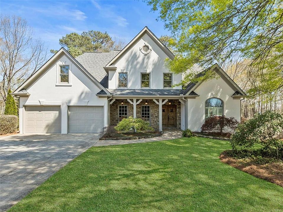 WILL GO FAST! Located on a flat lot in sought after East Cobb swim/tennis Sewell Farm neighborhood with TOP SCHOOLS (WALTON HIGH). This home has French country charm with beam features, rocking chair front porch and open vaulted gorgeous living spaces. The gorgeous large owners suite is located on main with large sitting room, his and her walk in closets with built ins and spa-like large master bath. Fully fenced flat backyard! The home's large gourmet chef's kitchen features both an island and breakfast bar as well as opens perfectly to a cozy fireside keeping room and breakfast room, flowing perfectly out to large back private deck and yard. The upper level of the home hosts three more generously sized bedrooms, two full baths, and large bonus room. Walk to the neighborhood swim/tennis with large pool, clubhouse, playground and two tennis courts. Near to all East Cobb has to offer including The Avenue, Whole Foods and more. Take advantage of low Cobb County taxes. Welcome Home!