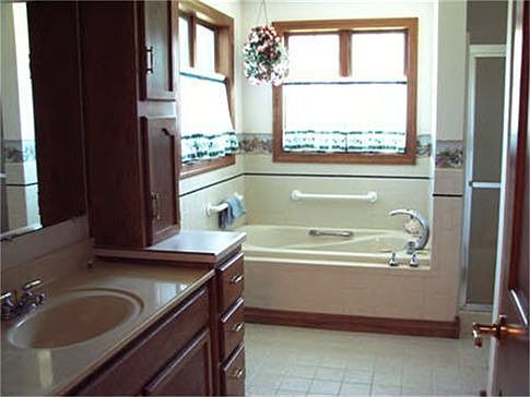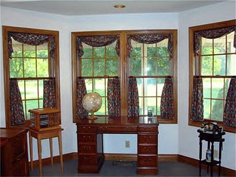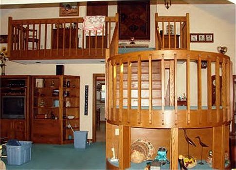 Very unique home built by present owner. Shop plus extra garage built on 3 acres before house. Owner did much of the woodworking, very well done! Oak wood work. Curved stair way--Very open floor plan. Master on main floor. Handicap accessible. Office & music room or 2nd office on main floor. Screened porch overlooking deck & property. Porch across front. Great house & grounds across from Rock Springs! Roof replaced. Large open foyer.
