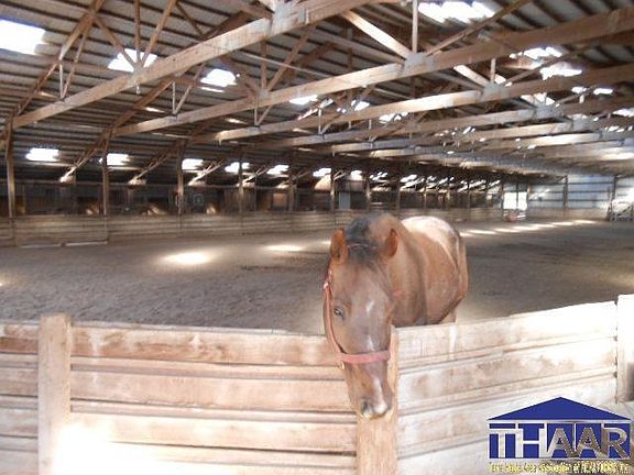 This one-owner Brick Ranch sitting on approximately 25 acres with a huge Pole Barn, features 3 bedrooms and 2 baths on the main level with the living room and the 3 bedrooms having hardwood floors and a finished basement with an additional full bath. There are 2 fireplaces. This home has a lot of brick accent inside the home. There is a deck, inground pool, outbuilding and yes....a Pole Barn that has been used for horses with a riding arena in the past. The Pole Barn, according to public records, is 102 x 160 ft. with additional storage on the side. There is also a 1/2 bath in the barn. There is an attached garage and an open front porch. There are 13 tillable acres, approx 4 acres of pasture, and approx. 6 acres wooded. The acreage is located south of Howard Subdivision and has multi uses for the owner.