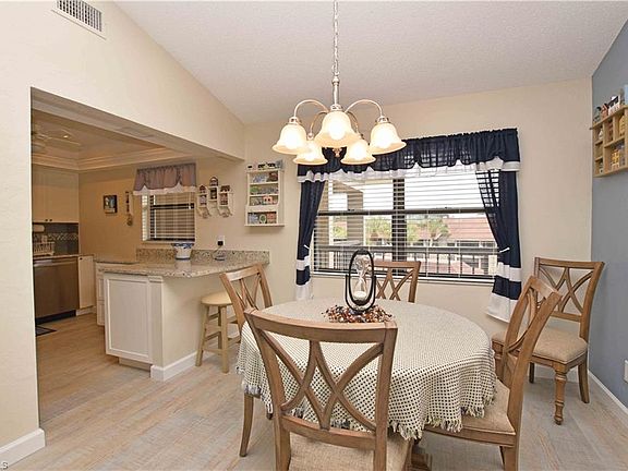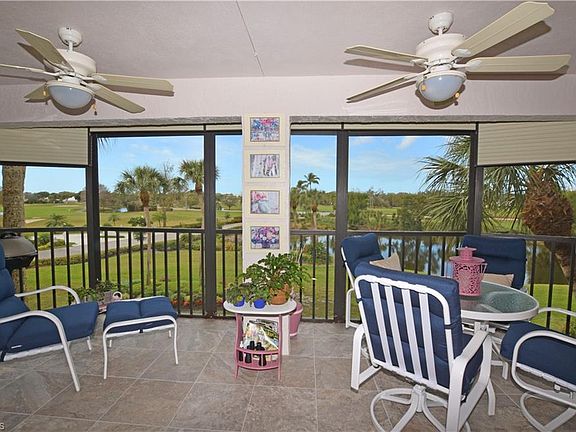 Gorgeous updated condo, shows like a model, with beautiful views of lake and golf course. Remodeled kitchen with granite countertops and newer stainless steel appliances. Breakfast bar. Vinyl planking floors through out unit. Master and guest bedrooms are very spacious with walks-in-closets, and sliding glass doors that lead out to screen in balcony with great views. Hurricane shutters. The home has a carport with extra storage and another assigned parking space. Optional Golf and social memberships to Imperial Golf Club. Close to Mercato Entertainment, Shopping and Beaches.