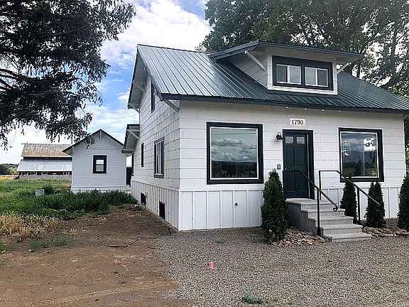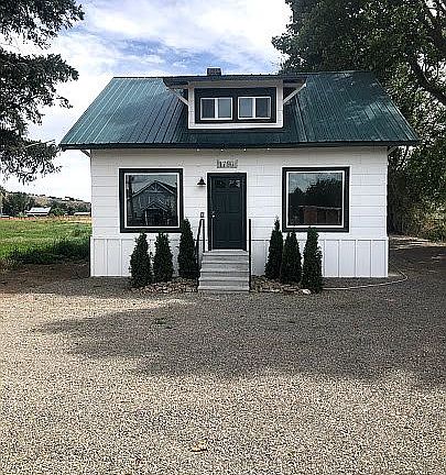 Recently restored vintage charmer with loads of character. Large enough to offer that farm feel with space for gardens and expanding your current hobby's. Extensive remodel and restoration made including: new windows and doors, new electrical service/panel/wiring/fixtures, extensive repairs to the plumbing, new drain field and septic, new electric wall heaters, new kitchen with metal countertops, new bathroom, new LVP flooring, new board and batt wainscoting, new roof on garage and all new interior/exterior paint. Remodel oriented the main bedroom and bathroom on the 1st level with loads of storage. Detached two car garage and metal shop(30x40 with separate, single phase electrical service) have all new electrical service and fixtures. Original cabin on the property would make a great kid's bunkhouse or artist's studio. Off of cabin is a root cellar for storing all the food you grow on this amazing property. Property is mostly fenced with metal pipe. Trees to the south of the property help to keep the home nice and cool in the summer months. The historic barn needs lots of work but has loads of potential and charm. Gleed Irrigation rights paid at $220/year.