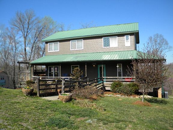 Private home on 28.78 acres. Features include stone fireplace in living room which is open to the loft. Full wraparound covered porch with uncovered deck just outside the kitchen for summer dining. Metal roof and cementous siding mean low maintenance. Detached metal garage, separate workshop and storage buildings. Land is mostly wooded with stream, some cleared between home and main road. Full unfinished basement with walk out.