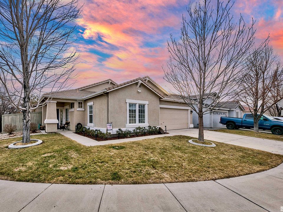 Step into the epitome of this cozy 3 bedroom, 2 bath single story home located in Gold Dust, a sought after community in Double Diamond Ranch. This home is situated on a desirable corner lot, offering ample space for outdoor activities. Located next to parks and plenty of walking trails you will own your own oasis in a vibrant community. Experience the seamless flow between the kitchen and family room. Elevate your culinary skills with upgraded Z-Line appliances which include dishwasher, gas stove top...., with an electric oven and a refrigerator that conveys with the home. Unwind in the tranquil master bedroom, showcasing a striking shiplap accent wall that adds warmth and texture to the space. It has a large ensuite bathroom as well as a large walk in closet. Step out into a fenced backyard with a covered patio with a water feature.