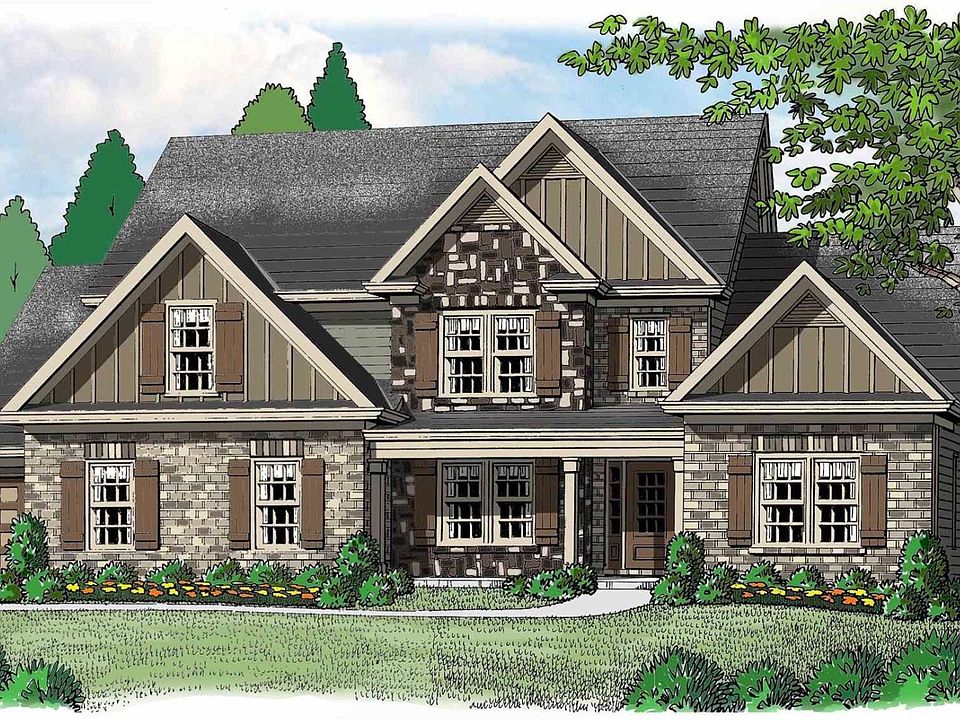 The Brunswick - This spacious 2-story home features a master suite on the main level with trey ceiling, his/her walk-in closets, a generous sitting area, and a secluded bath with a tile shower, garden tub, granite countertops, and tile flooring. The gourmet kitchen has a large breakfast area with premium cabinets, and granite countertops. The formal dining room has coffered ceilings and shadowboxing. Upstairs are 3 secondary bedrooms with 2 full baths, as well as a loft. This home has a covered back patio.